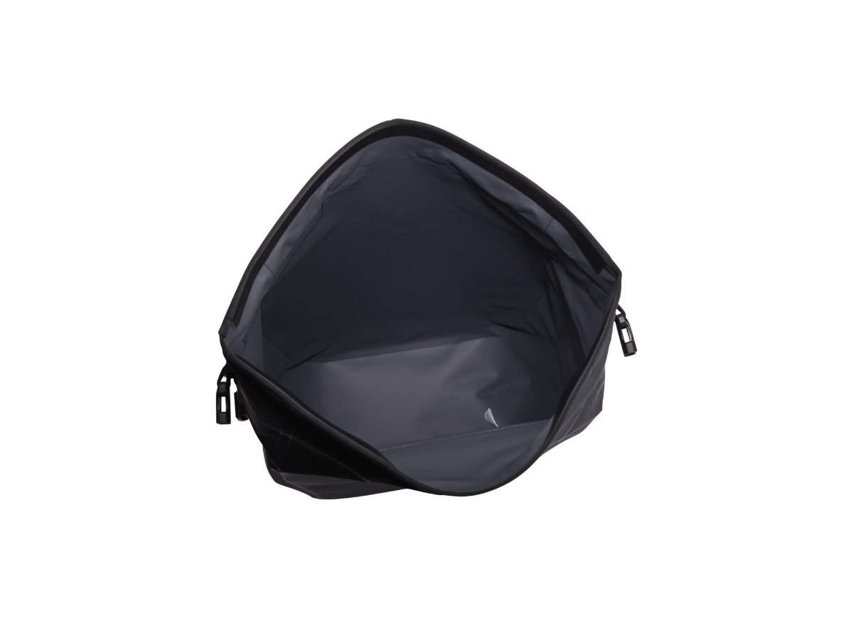 The roll-top Thule Shield Pannier 22L offers waterproof storage and a sleek, hardware-free design that makes it comfortable to carry off the bike. The IPX4-rated welded construction keeps your essentials protected, while reflective detailing enhances visibility on the road.