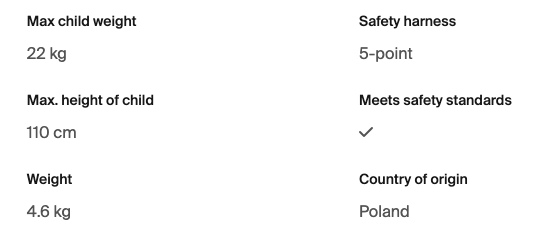 Lightweight yet sturdy seat combining a hard outer shell with soft padding for premium child comfort